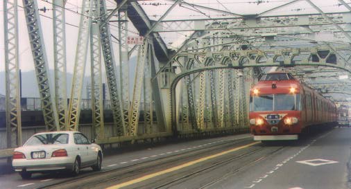 タンダードサイズの電車が(それも特急や急行)走ります。場所は、名鉄犬山線の犬山